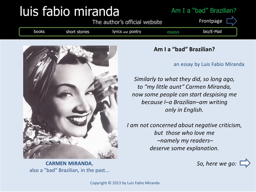 Link to: 104-001-001-BAD-1.HTM Link to: THE AUTHOR1.HTM CARMEN Link to: 104-001-001-BAD-1.HTM Link to: 104-001-000-BAD-1.HTM Link to: index.htm Link to: index.htm Link to: 108-000-000-bio-1.HTM Link to: 104-000-000-essays-1.HTM Link to: 103-000-000-lyrics and poetry-1.HTM Link to: 101-000-000-books-1.HTM Link to: 102-000-000-short stories-1.HTM